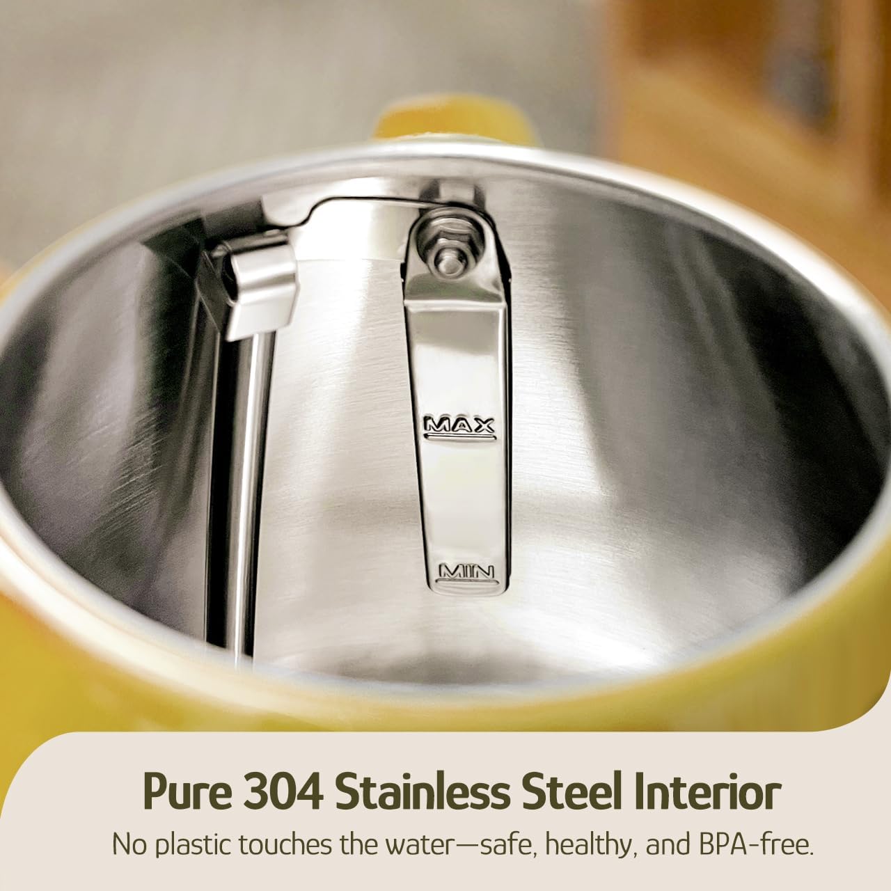 A chaleira elétrica Hazel Quinn X Eduardo Recife une design artístico floral exclusivo ao desempenho técnico premium. Seu interior é inteiramente em aço inoxidável 304 de grau alimentício, livre de BPA, garantindo preparo seguro e saudável da água.