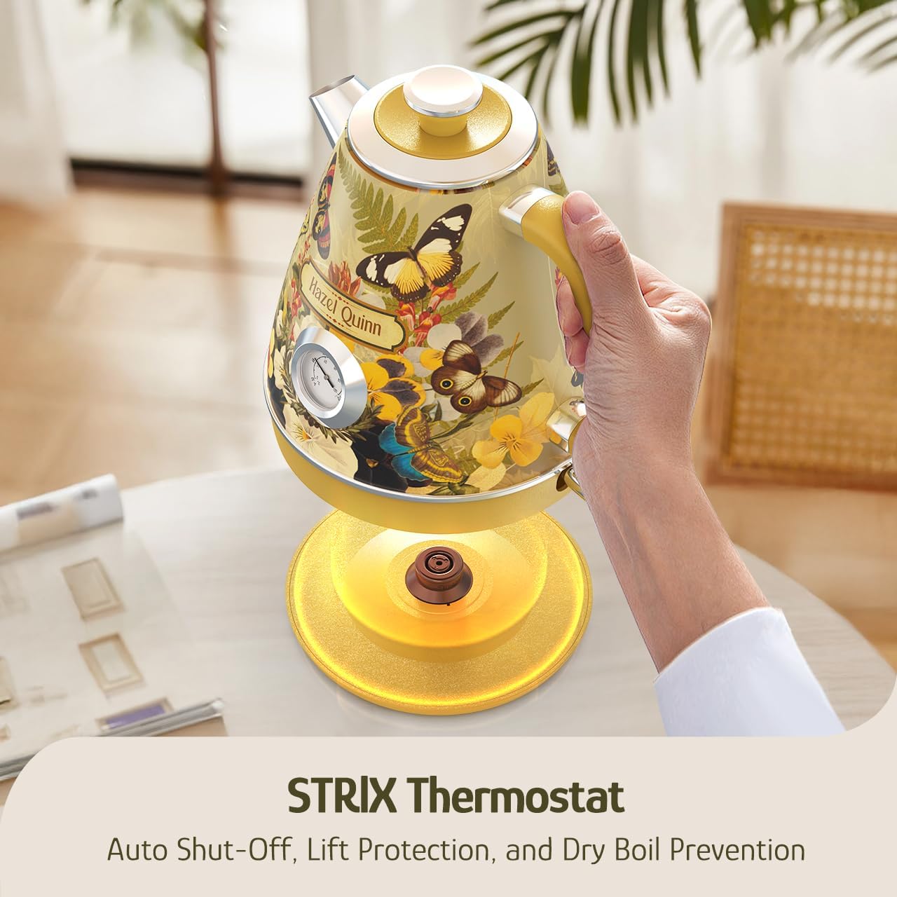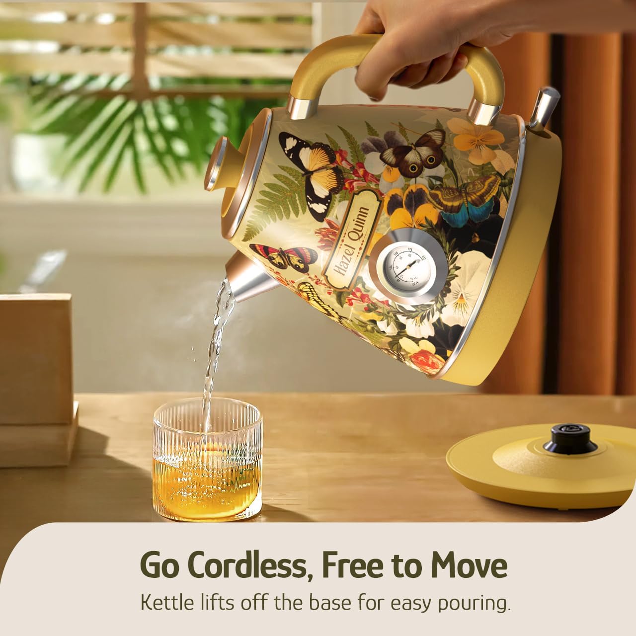 Chaleira Elétrica Hazel Quinn X Eduardo Recife Floral Retro 1,7L 1200W Inox 304 Termômetro Auto Desligamento Fervura Rápida 110V