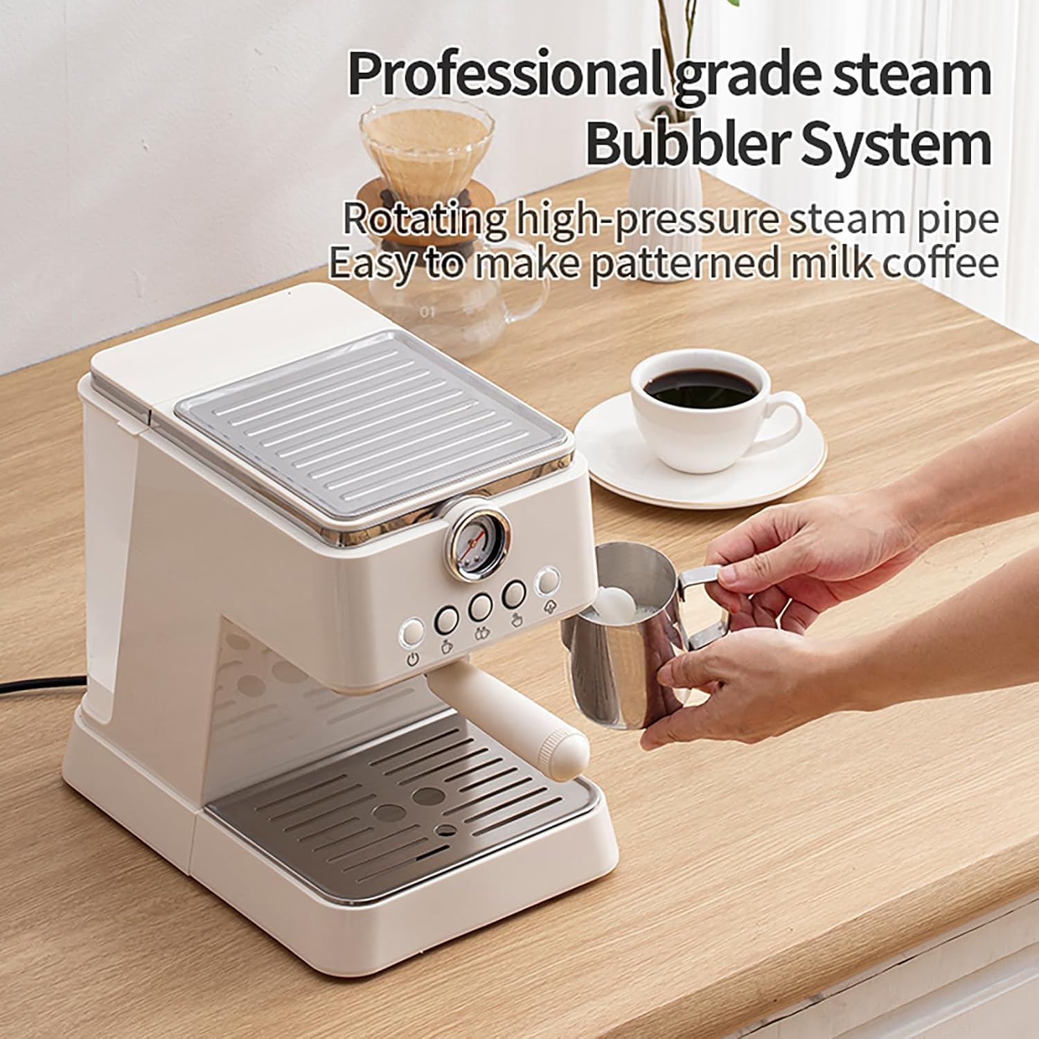 A Máquina de Café Espresso BQEUCE Branca oferece extração profissional e cremosa para espresso, latte e cappuccino em casa ou escritório. Com bomba italiana de 20 bar, controle inteligente de temperatura via PID e sistema de pré-infusão, garante café encorpado com sabores realçados e crema densa. O aquecimento rápido (em até 30s) proporciona conveniência no uso diário, enquanto o vaporizador potente permite microespuma de leite homogênea, ideal para arte latte. Estrutura compacta com reservatório removível de 1,48L (50oz), painel automático de fácil operação e componentes fáceis de desmontar e higienizar compõem o equipamento. Indicado para todos os níveis de experiência, incorpora função de desligamento automático.