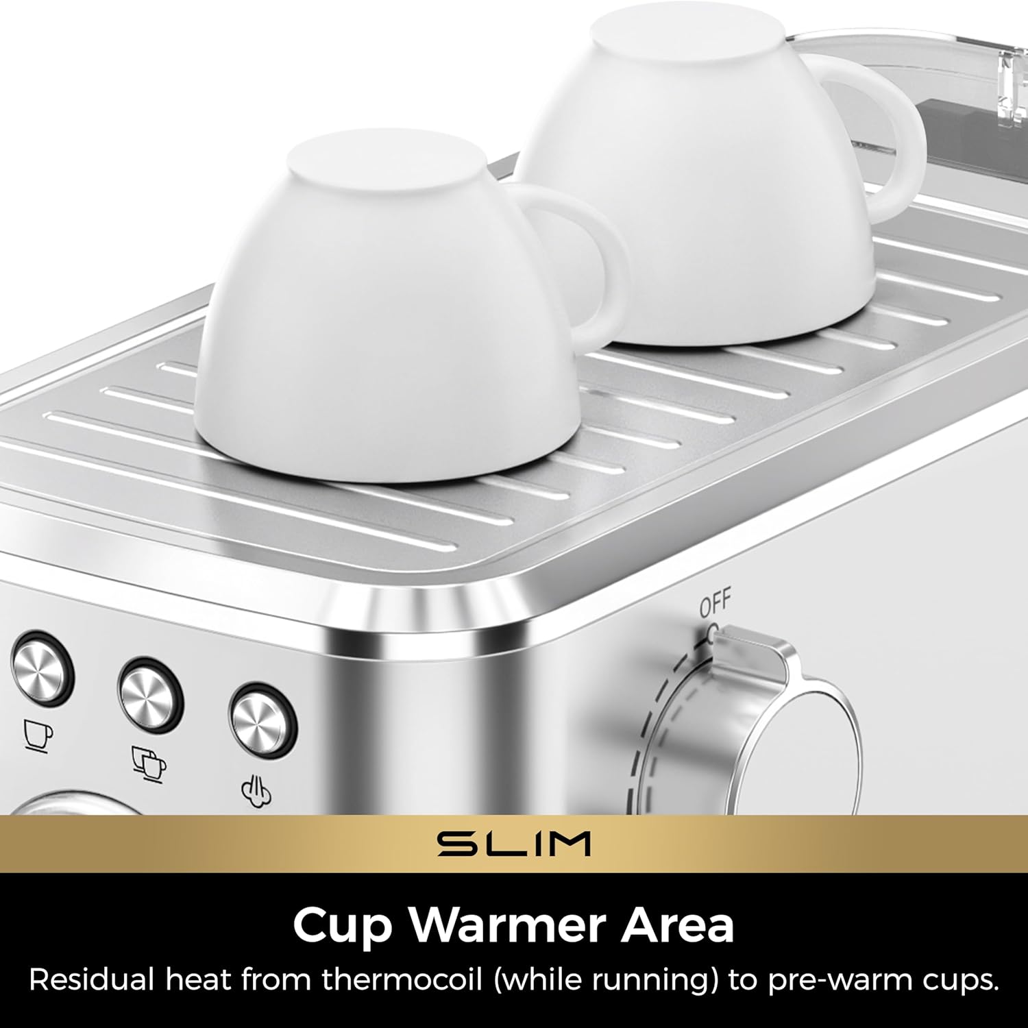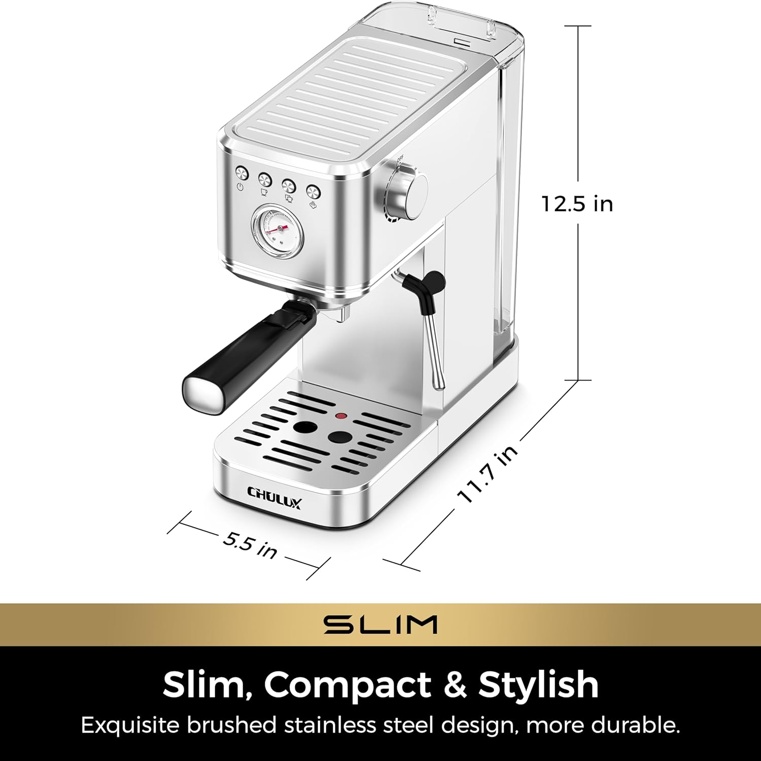 Máquina de Café Espresso CHULUX Slim Inox Prata, 20 Bar, Vaporizador, Painel Automático, Reservatório 1,18L, 110V